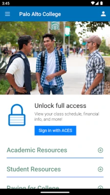 Accessing student account info has never been easier. Students can log in with your ACES credentials to access class schedules and info, grades, account balances, financial aid, and more.