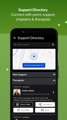 · Anonymous self-assessments · Access to peer support · Therapist Finder · One-touch calling to a crisis support · Information on fitness, nutrition, and injury prevention · On-demand tools targeting critical incidents, suicide risk, and emotional survival · Plus, many more!