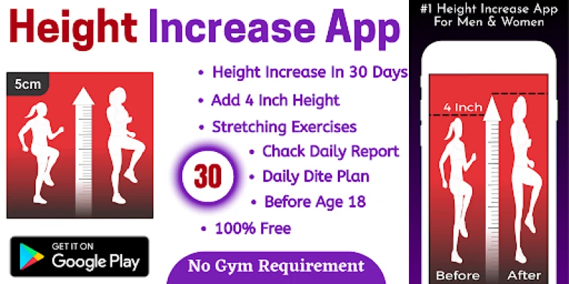 Increase Your height after age 18 no need surgery and medicine. In this app add 2 option to grow your height if you want to grow height after age 18. select opction After age 18 and get start to workout.