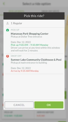 OmniRide Connect operates in Manassas Park, Monday – Friday from 6:00 a.m. – 8:00 p.m. Rides are reserved for same-day travel and door-to-door service is not available. Transfers to OmniRide bus routes are available at the Manassas Park VRE Station (transfer to VRE trains and OmniRide Local Manassas-67 route) and at the Hub at the Prince William County Courthouse (transfer to OmniRide Local Manassas-65B, Manassas-65N or Manassas-67, East-West Express-96, and Manassas Metro Express-60).