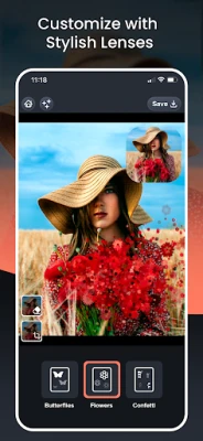 Lens options: Many effects offer a variety of lenses to change the motion graphics on your photo. Lens options include hearts, bubbles, feathers, butterflies, stars and many others (even smiley faces).
