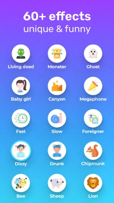 Our sound effects for videos and voice generator app make adding effects to simple dull audio quickly. Change your voice with the voice voice generator tool. Make a robot voice or apply simple voice effects like a girl, woman, giant, older man, alien, etc. With our sound effects for videos app, convert all your voice clips into something funny now. Select the voice clip to get started.✔️