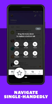 Your inbox, your vibe. Customize the bottom nav bar with the folders and views you care about most. Then, pick custom sounds, themes, swipes to add your own flavor and unboring your inbox.